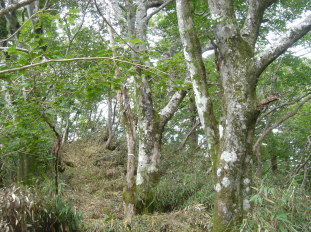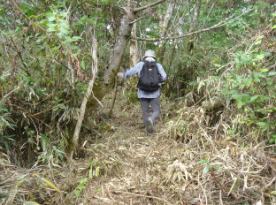 快適な道を過ぎ尾根の三叉路?(三叉路を確認出来ず!)を過ぎ、また急な道を登って行く....