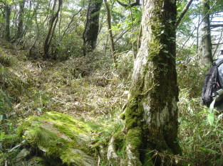 昼食後、下山する事に...登って来た道を引き返せばよいが、同じ道じゃあ面白くないので県境尾根ル−トを降りる事にした。
