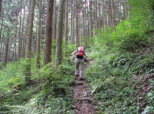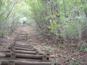 | 阿波竜王山と讃岐竜王山の分岐へ到着! まずは讃岐竜王山へ行く事にする。 修験の道(笑)のような心臓破りの丸太の階段を登る。 これが湿っているとツルツル滑って怖いので 私はなるべく横の斜面を登るようにしています(^^ゞ ここで今日初めて単独の男性の方とお会いする。 分岐から約5分で讃岐竜王山頂到着! 残念ながら展望無し〜 その代わりに?シコクブシやヤマラッキョウが迎えてくれた。 どちらも今年初めてお目にかかるのでうれしい♪ |