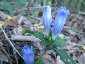 | よく整備された道を歩く.... 登山道脇には秋の定番の花、ツルニンジンやアキチョウジ・キバナアキギリが 目を楽しませてくれる。 特にアキチョウジはいたるところで群生しており今盛り! 一箇所のみ白いアキチョウジが咲いていたが写真失敗^^; ○合目表示された道を登って行く..... 気温が低いので殆ど汗はかかない。いい季節になったなぁ〜 木々も心なし色づきかけている。 六合目を過ぎた辺りからアサマリンドウがチラホラ..... 八合目を過ぎると群生!辺り一面紫色だ。だが残念ながら開いている花は少ない。 |