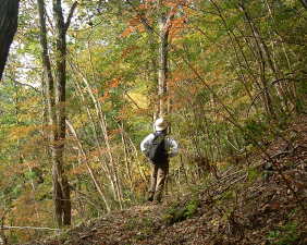 慎重に斜面を降りる...