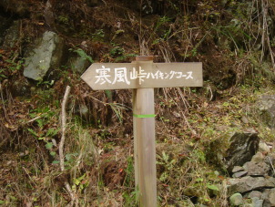 教えて頂いたとおり橋を渡るとすぐに「寒風峠ハイキングコ−ス」の標識