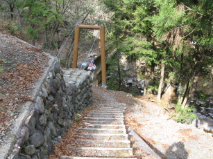 ▲狭いトラバ−ス道を歩く ▲奈半利川に架かった千本橋まで戻って来ました!
