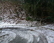 国道32号線から県道17号線に入り暫く行くと雪がチラチラ...