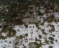 キャンプ場横の登山口に「絶景 山頂まで470m」の標識
