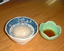 食べてみると、蕎麦粉で作った、おだんごをしょうが醤油で食べるものでした。