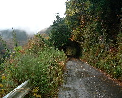 林道のわりには、とりあえずアスファルト舗装されている。が!所々道路の陥没...