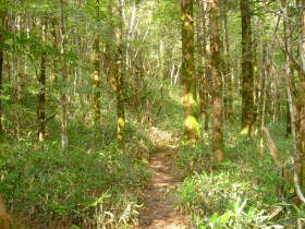 ここからは、気持ちよい笹原の中を快適に歩く..道端には