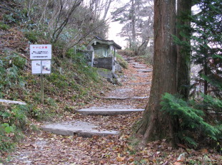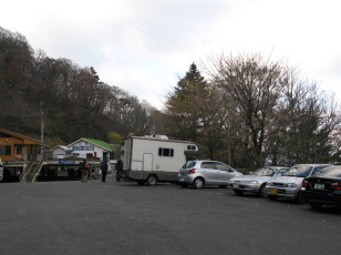 ▲一宇渓谷の紅葉〜♪天気がいいともっとキレイなのですが.... ▲見の越駐車場 ▲さぁ〜階段を登って出発!