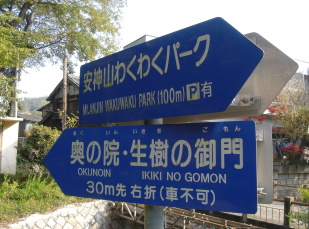 ▲宝物館の前を左折 ▲安神山わくわくパ−ク方面へ進む ▲わくわくパ−ク? ▲安神山まで800m!ところが....