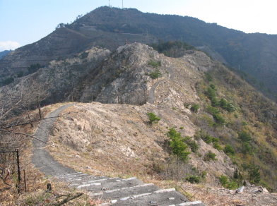 ▲車道を横切ります ▲前から団体さんが下りて来られてます ▲二度目の車道との合流 ▲最後の階段を登ります ▲電波塔が見えて来ましたNHKと南海放送でした