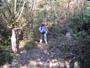 ▲この指示票が見えると安神山267.1m山頂!ここにもキティ山岳会さんの山頂表示♪ ▲せり出す岩の下を歩きます ▲えぼし岩が見えて来ました