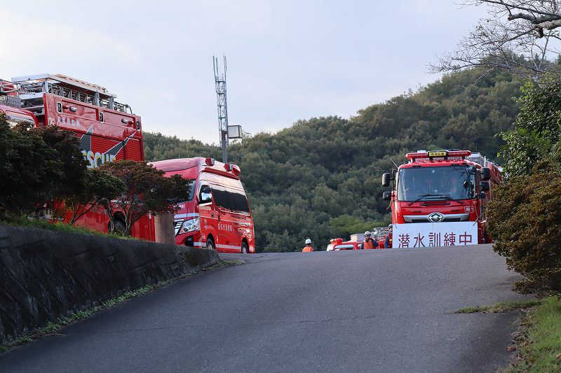 麓の三郎池では消防の方が訓練されていました